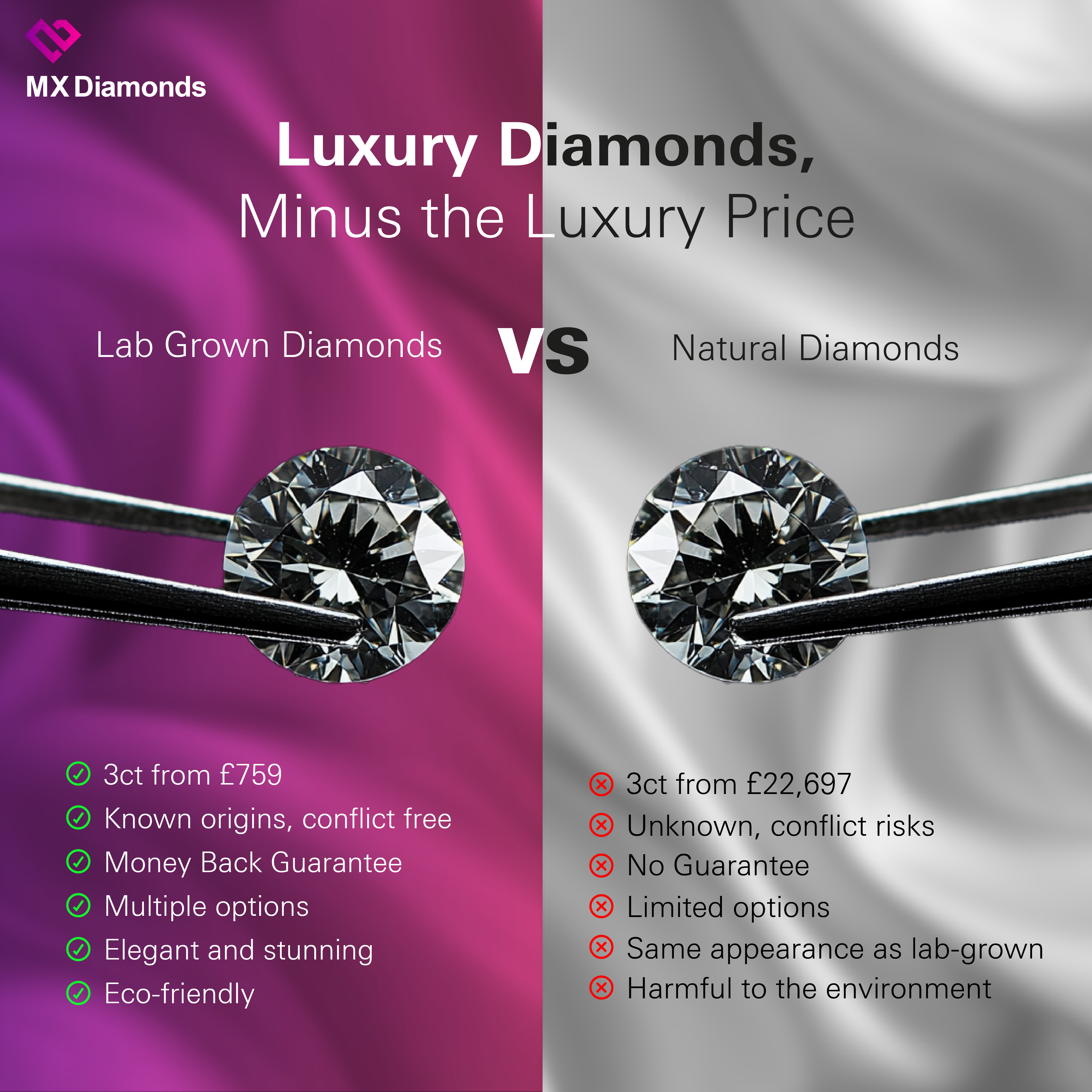 Lab grown diamonds typically offer greater value for money compared to their mined counterparts. You can expect to pay 30-50% less for a lab grown diamond, meaning a bigger, more dazzling stone for your budget.